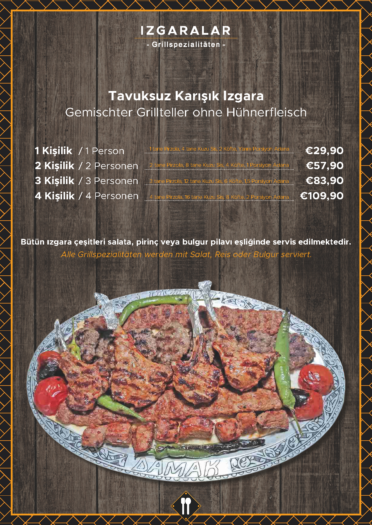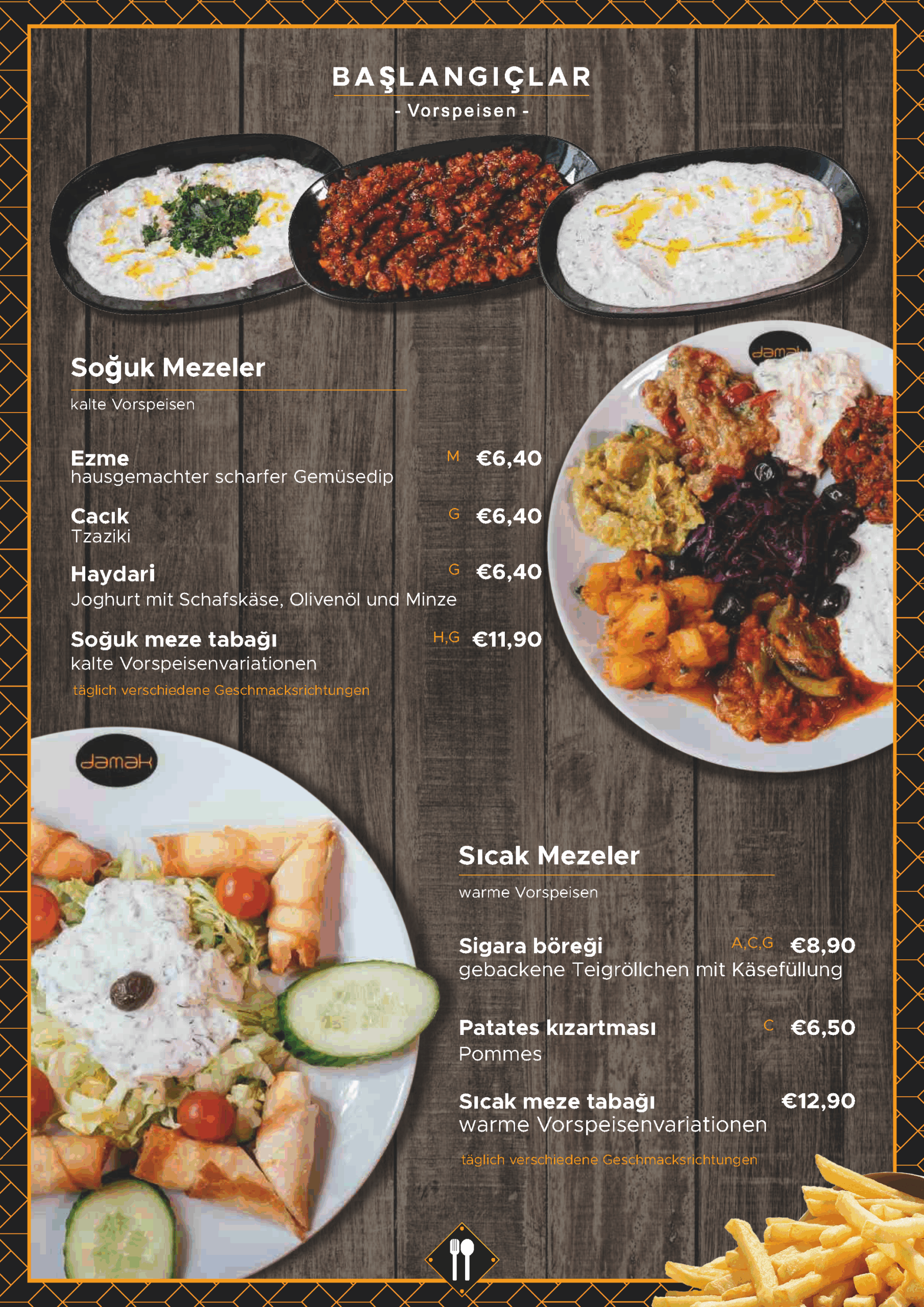 Sağlığınız için tamamıyla doğal ürünler hazırlıyoruz. Tüm lezzetlerimiz birbirinden özel ve organik malzemeler ile hazırlanan ürünlerdir.Etli ekmekten salatalara veya Izgralardan çorbalara kadar çok geniş bir ürün yelpazesine sahip olan Damak Restaurant, sağlığınızı önemser ve daima en kaliteli ve helal malzemeleri kullanır.